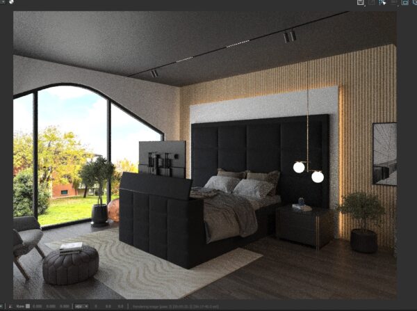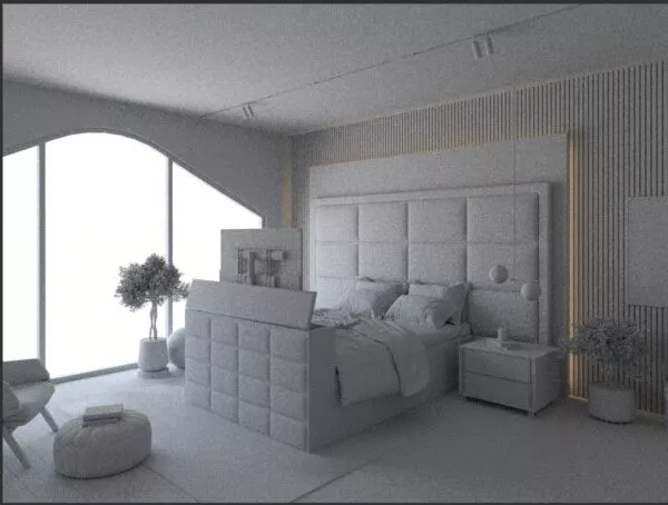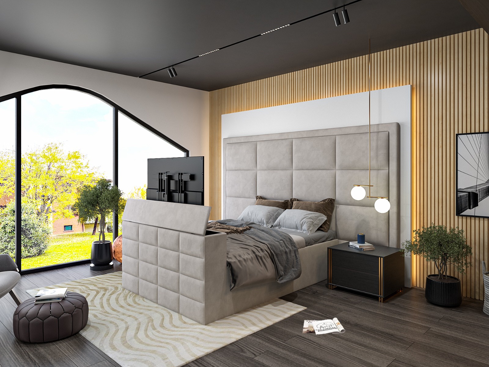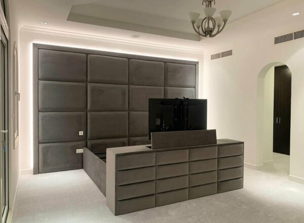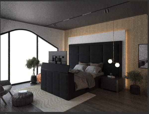Bespoke luxury TV bed with a remote-controlled TV lift mechanism