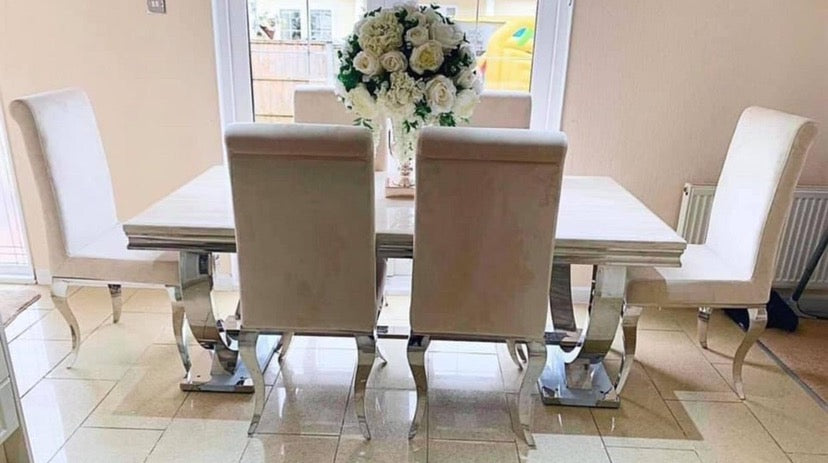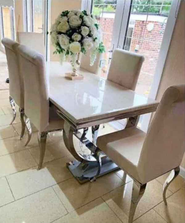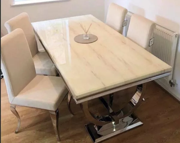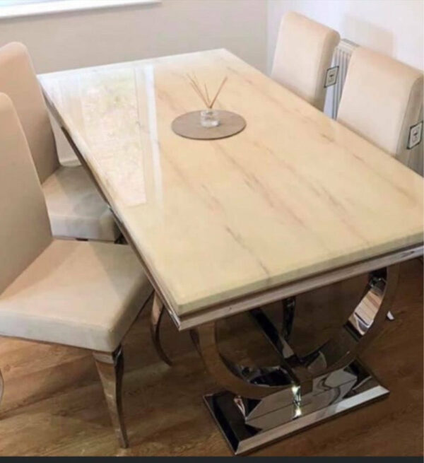 Solid cream marble table with 6 cream chairs