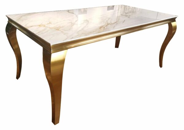 Available as 1.5 meters or 1.8 meters x 90 cm meter marble table with beautiful gold base