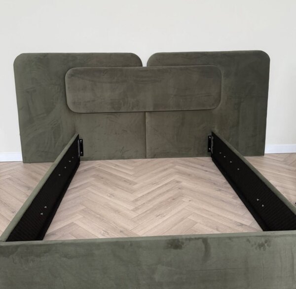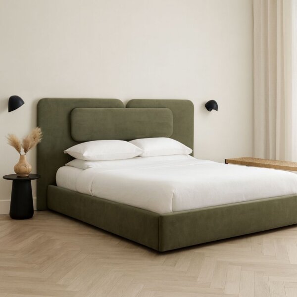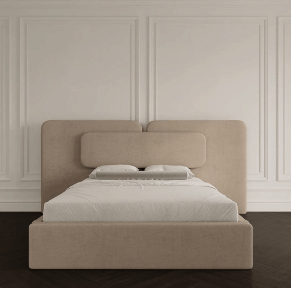 This minimalist design offers a flowing curve headboard shown in Luxurious full velvet upholstery provides a rich and glamorous texture, adding a touch of sophistication.