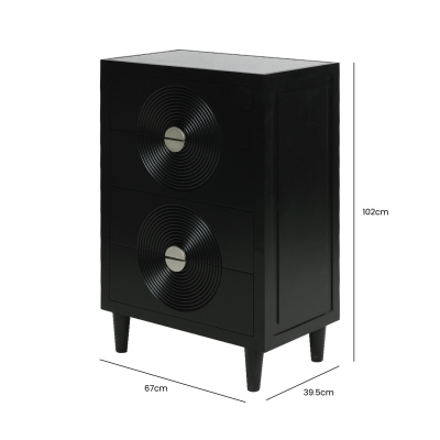 Ella 4 Drawer bedside Tallboy Cabinet Black with SM Mirror