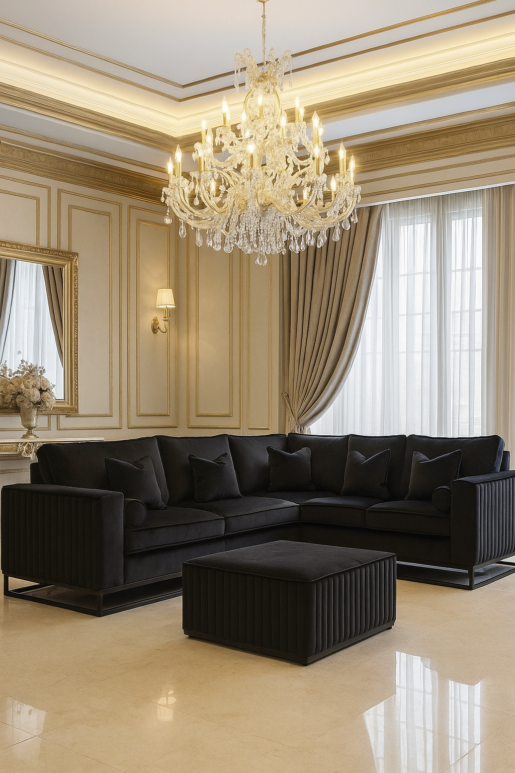 Monaco Black Velvet Corner Sofa | Luxury Modern Sofa UK | HOB Furniture